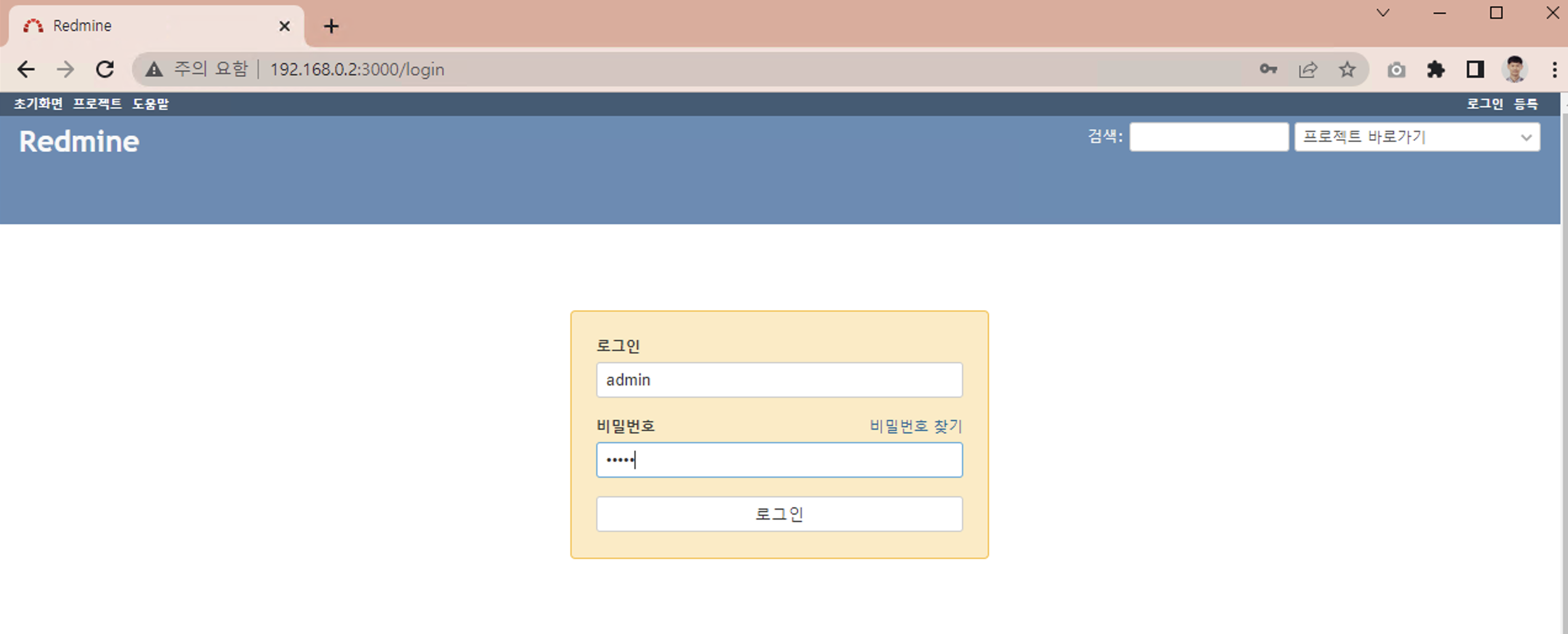 초기 비밀번호는 admin/admin 입니다. 최초 로그인시 비밀번호를 변경하여야 합니다.