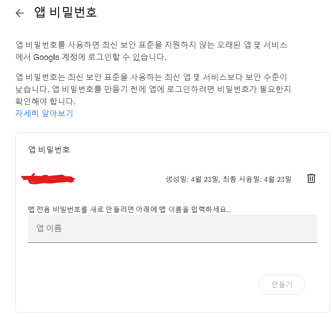 APP PASSWORD 추가